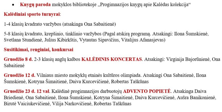 Renginių programa: