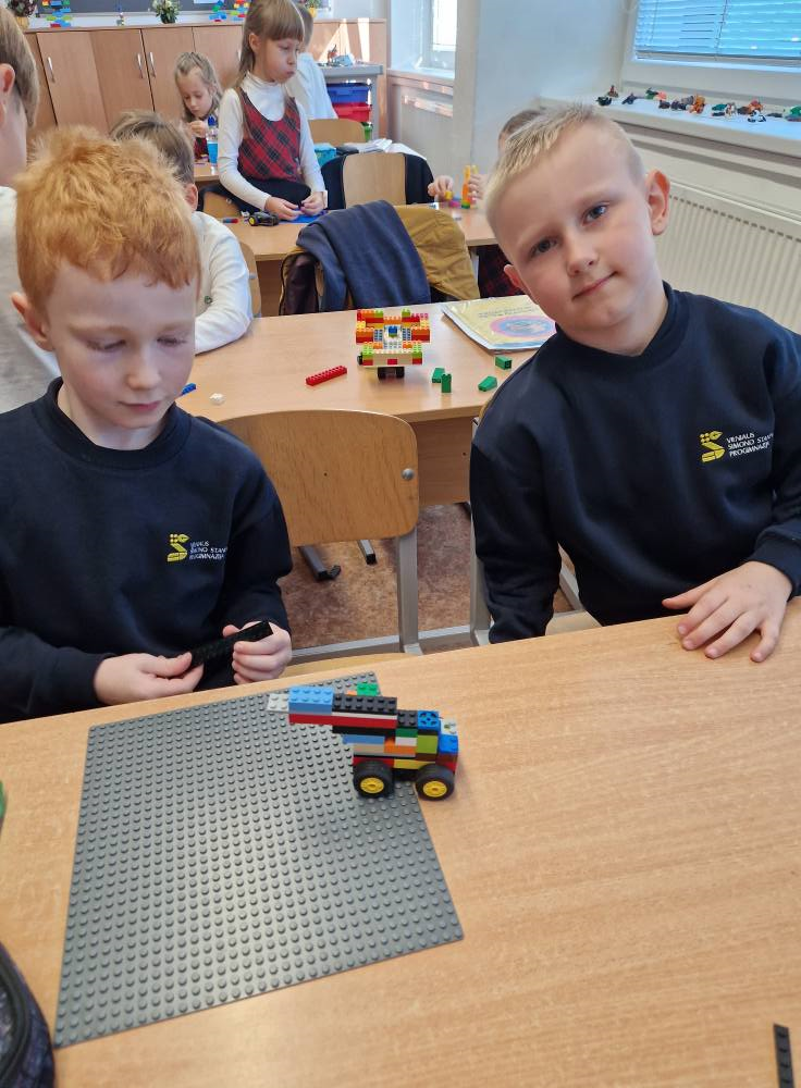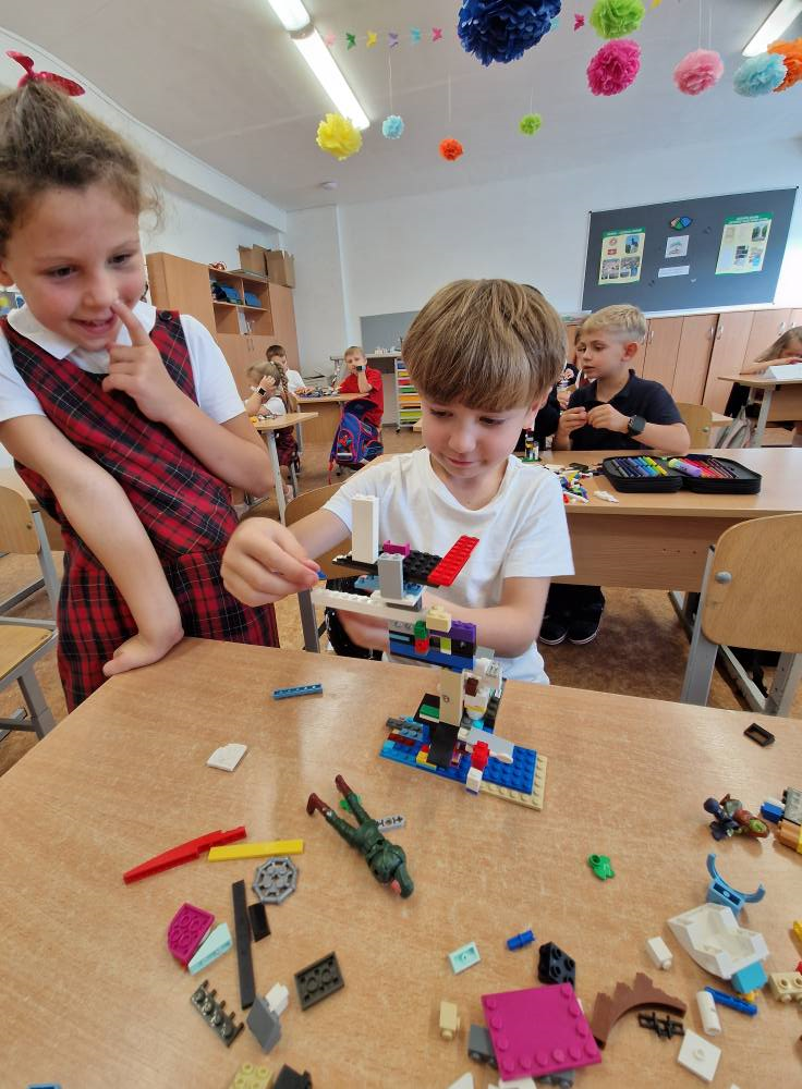 Progimnazijos pirmųjų klasių mokiniai pradeda mokytis Novatoriško verslumo ugdymo programos dalykus! STEAM LEGO 1a klasės mokiniai (pradinio ugdymo mokytoja Ieva Momkuvė) LEGO STEAM pamokose džiaugėsi progimnazijos įsigytu SERIOS PLAY komplektu ir kūrė vis naujus objektus – nuo tvirtų statinių ir aukštų dangoraižių, per žaliuojančius augalus ir medžius, iki išradingų transporto priemonių. Vaikai statė, kūrė, bandė ir džiaugėsi savo idėjomis. Jie sužinojo, kad kiekvienas pastatas turi turėti tvirtą pagrindą, kiekvienas medis yra svarbus gamtai, o kiekvienas išradimas prasideda nuo mažos, bet drąsios minties. Šios pamokos buvo kupinos kūrybos, juoko ir smalsumo. Pirmokai mokėsi dirbti komandoje, išreikšti savo idėjas ir patikėti, kad mokslas ir kūryba – puikus duetas! Sukurtų LEGO statinių galima pamatyti 110 kabinete,