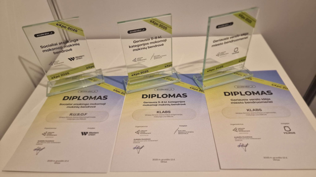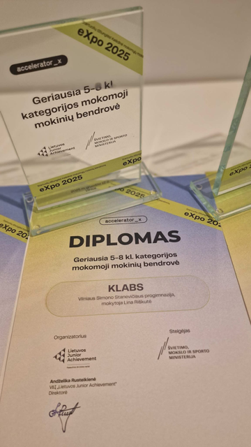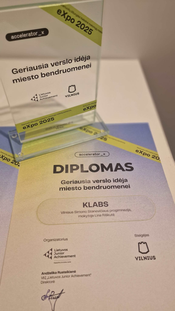 Baigiantis 2025-iesiems metams norime pasidžiaugti, jog gruodžio 12 d. mūsų versliesiems mokiniams buvo ypatinga! Dvi 8B klasės mokinių bendrovės (finansinio raštingumo ir verslumo mokytoja Lina Riškutė) - KLABS ir R.U.S.O.F - dalyvavo didžiausiame metų verslumo renginyje - Kalėdinėje eXpo "Startuolių džiunglės", kurį šauniai suorganizavo Lietuvos Junior Achievement ( daugiau apie renginį: Rekordinė Kalėdinė mokomųjų mokinių bendrovių eXpo: į „Startuolių džiungles“ pasinėrė daugiau nei 1000 jaunųjų verslininkų - LJA)