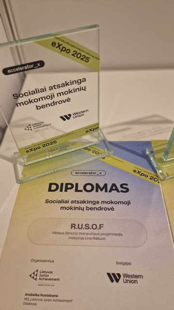 R.U.S.O.F buvo pripažinta "Socialiai atsakinga mokomąja mokinių bendrove".