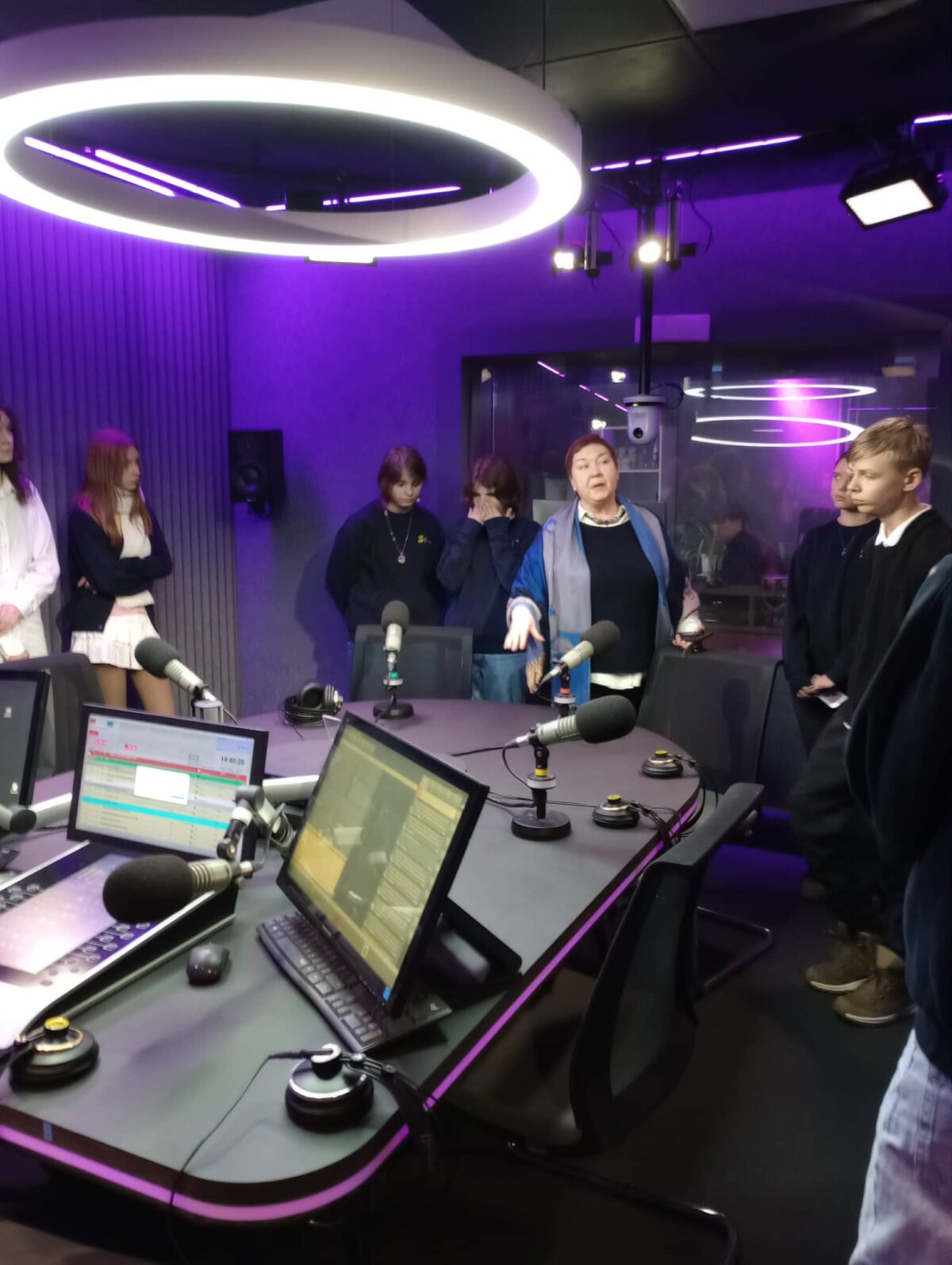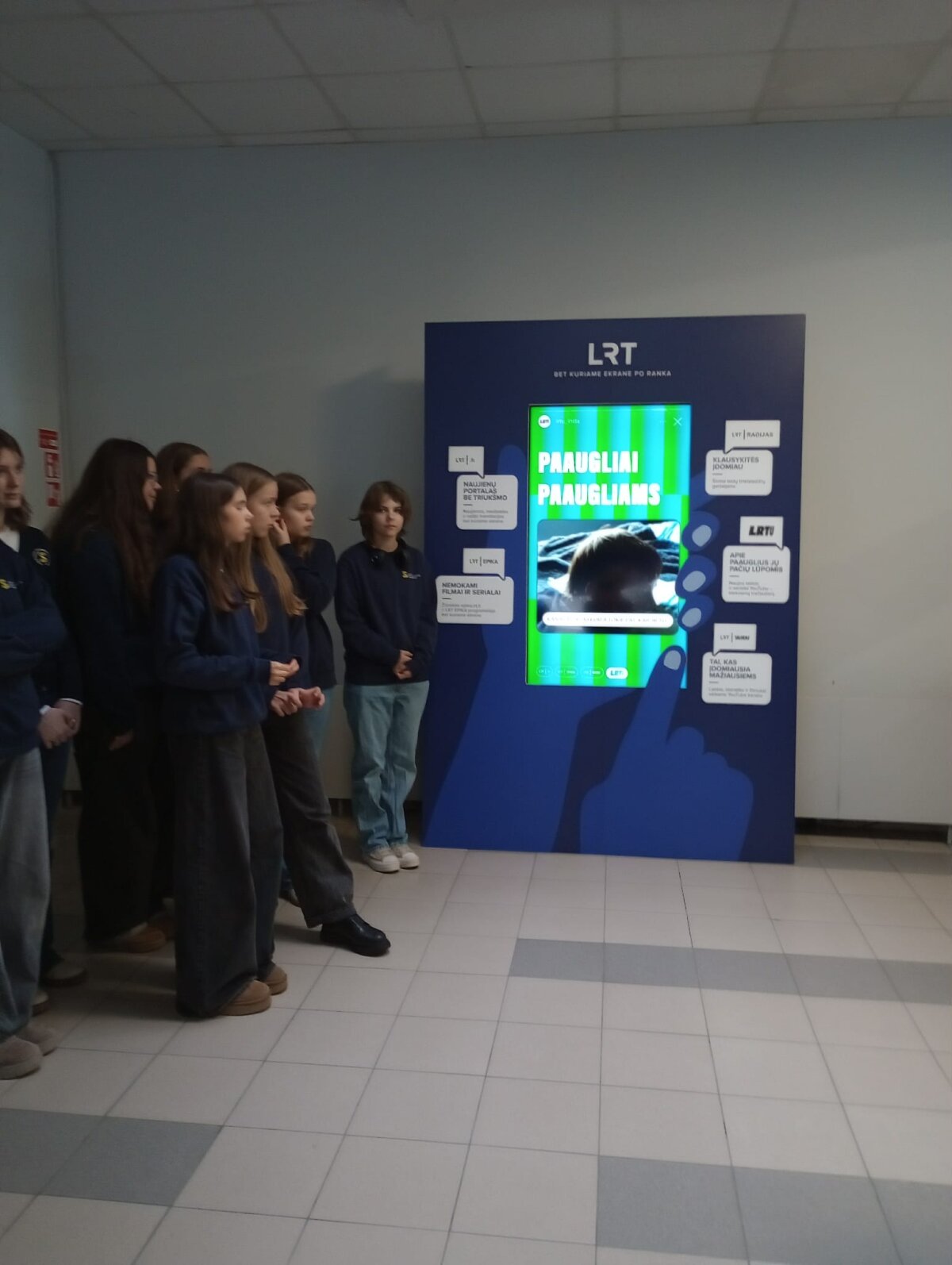 Finansinio raštingumo ir verslumo 8b klasės mokiniai ( klasės vadovė, lietuvių kalbos mokytoja metodininkė Birutė Vaiciukevičienė) apsilankė LRT, kur žiniasklaidos užkulisiai atsivėrė tarsi gyvas, nuolat besikeičiantis muziejus. Ekskursija tapo galimybe ne tik pamatyti, bet ir pajusti, kaip gimsta radijo laidos, televizijos projektai ir naujienų reportažai.