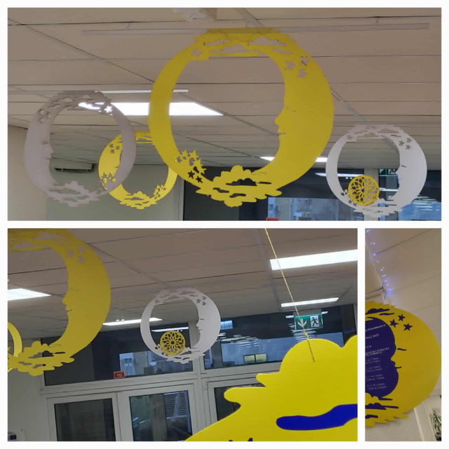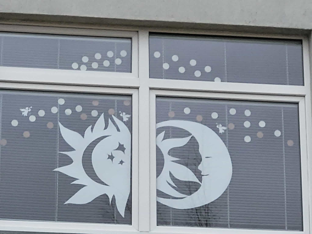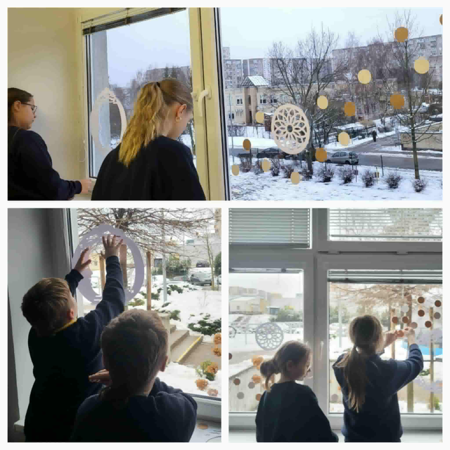 Mokykloje jau tvyranti kalėdinė nuotaika įgauna gilesnę prasmę. Mokyklos erdvės pildosi Mėnulio, Saulės,Žvaigždžių simboliais, kurie apipinti mitais, legendomis ir yra neatsiejama lietuvių etninės kultūros dalis. Dangaus simbolių ornamentai puošia liaudies meno, profesionaliosios dailės kūrinius bei itin svarbūs ir M.K.Čiurlionio kūryboje. Šiemet šiuos simbolius komponuoja ir mūsų mokiniai: