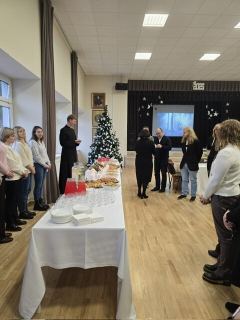 Šventinėje ir kartu jautrioje aplinkoje skambėjo nuoširdūs padėkos žodžiai. Progimnazijos direktorė Daiva Briedienė pasidžiaugė sutelktu darbuotojų kolektyvu, puikiais mokyklos rezultatais, padėkojo už nuoširdų ir atsidavusį darbą 2025 metais. Profesorius švietimo ekspertas Modestas Gelbūda, švietimo ekspertas Adas Papartis mokyklos darbuotojų bendruomenę sveikino už drąsą įgyvendinat nuolatinio tobulinimo metodologiją, pabrėžė švietimo misijos galią. Simbolinį darbuotojų Kūčių stalą palaimino Jeruzalės bažnyčios kunigas Linas. Informaciją apibendrino progimnazijos direktorė Daiva Briedienė