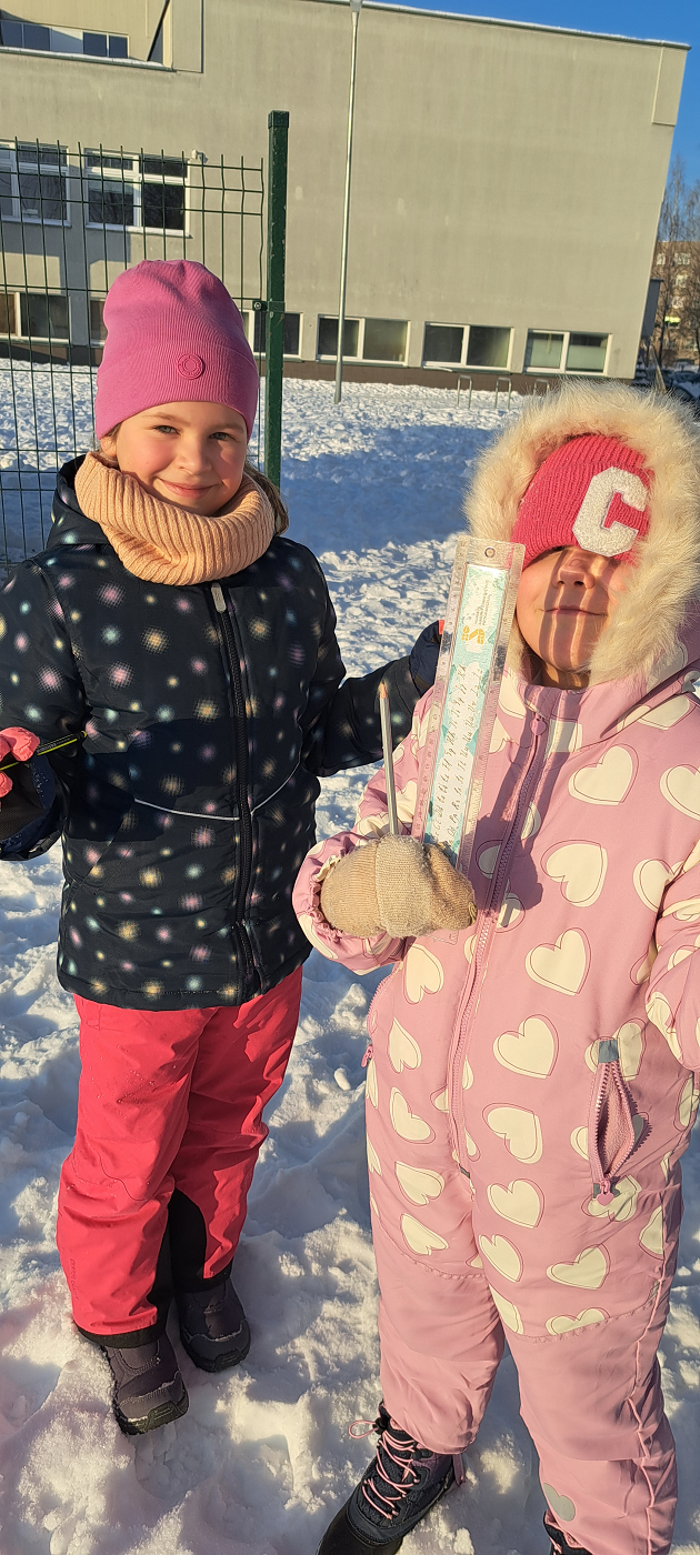 1b klasės mokiniai (pradinio ugdymo vyresnioji mokytoja Aušra Ilgevičienė) tyrinėjo žiemos fenomeną sniegą - per gamtos mokslų pamoką atliko STEAM tyrimą ,, Sniego danga". Tyrimo tikslas - trijose skirtingose mokyklos teritorijos vietose išmatuoti sniego dangos storį. Mokiniai pasirinko matavimus teniso aikštelėje, beržų alėjoje ir ant kiemo suoliukų. Atlikę tyrimą mokiniai padarė išvadą, jog žiema prie mokyklos nepagailėjo sniego - vietomis jo buvo net 25cm! Grįžę į klasę, užpildė gautus duomenis į lentelę, pasidžiaugė atliktu darbu. Gera mokytis atrandant ir patiriant!