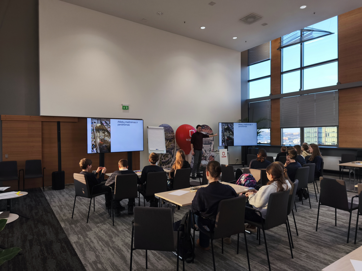7c klasė tvirtai žengia į priekį, pasirengusi įrodyti, kad jaunų žmonių idėjos gali turėti realų poveikį aplinkai ir bendruomenei. Smagu, kad renginys vyko Vilniaus miesto savivaldybėje, net 22 aukšte! Taip mūsų progimnazijos mokiniai galėjo ne tik susipažinti su Vilniaus miesto administraciniu pastatu, bet ir pasigėrėti gimtojo miesto grožiu iš paukščio skrydžio!