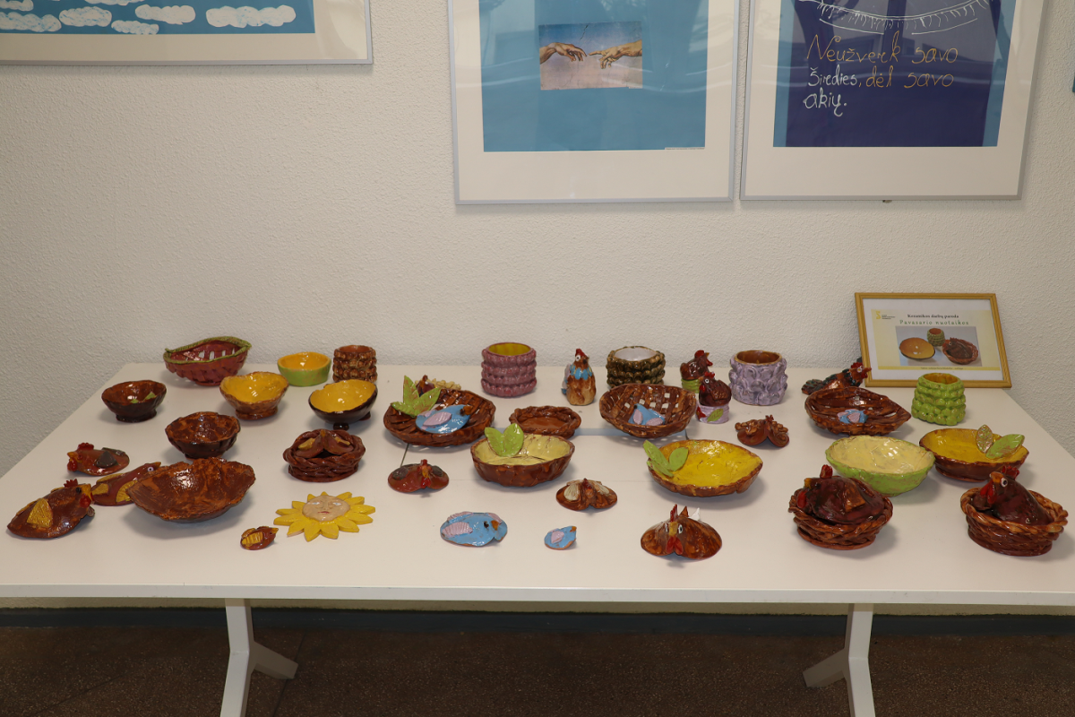 Mokiniai kūrė rankų darbo gaminius iš molio, skirtus papuošti Velykų stalą ir namų aplinką. Parodoje pristatomi praktiški dirbiniai: dubenėliai margučiams sudėti, vazelės pavasarinėms gėlėms bei įvairios velykinės dekoracijos.