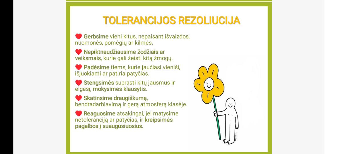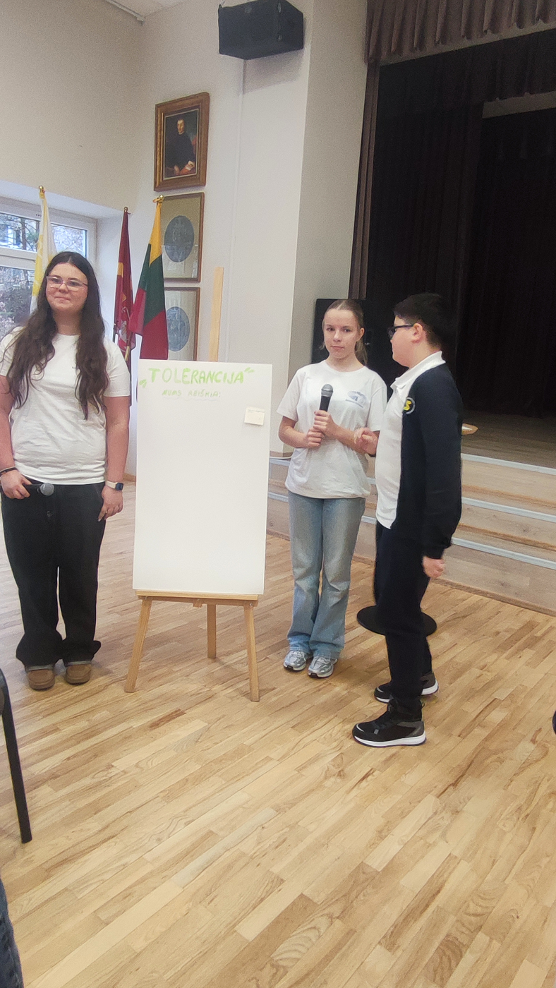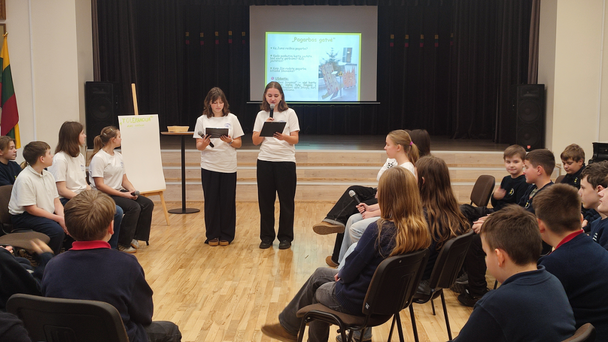 Lapkričio 17 dieną įvyko 3-4 klasių 1-oji Asamblėjos sesija, kurios tikslas – sustiprinti mokinių supratimą apie toleranciją ir paskatinti kurti draugišką, saugią bei įtraukią klasės ir mokyklos aplinką. Sesijos metu buvo priimta Rezoliucija, kurioje mokiniai pripažino, kad tolerancija yra bendravimo tarp klasės