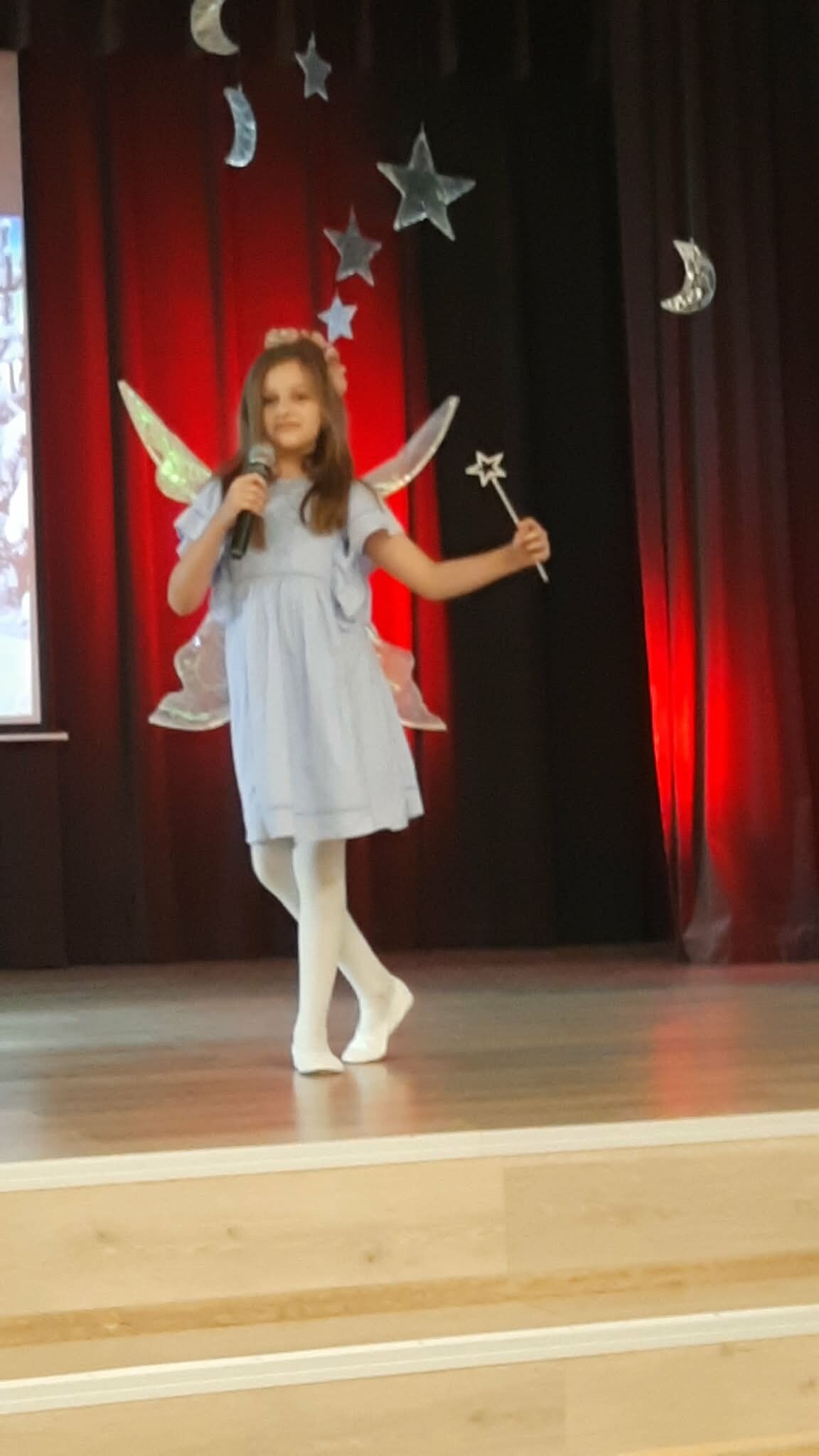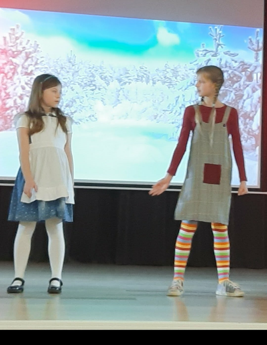 Toliau estafetę perėmė 2D klasė klasės vadovė- radinio ugdymo mokytoja Kristina Šukelytė Mockevič), kuri savo sapne pasakojo pasaką be galo – apie senelį, ieškantį eglutės bobutei, ir intriguojantį sandėrį su vilku.