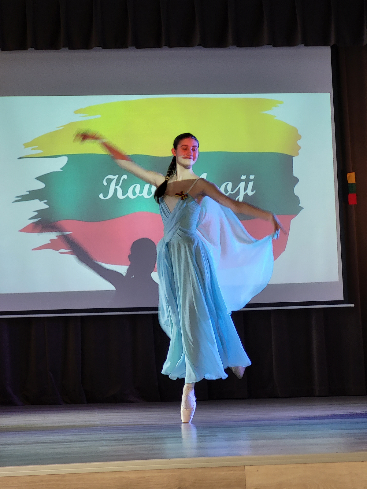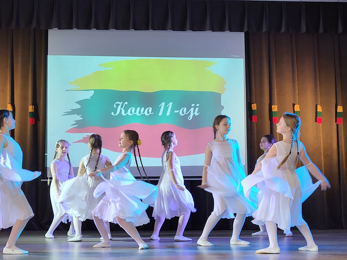 Šventinę nuotaiką dar labiau sustiprino muzikiniai pasirodymai. 8a klasės mokinės atliko dainą „Penkialapis“, kurios skambesys priminė pavasarį ir laisvės džiaugsmą. Scenoje pasirodė ir balerina Luka, šokiu „Mėlynoji banga“ perteikusi lengvumą, grakštumą ir laisvės trapumą. Muzikinę programą papildė saksofono garsai – 8a klasės mokinys Donatas atliko kūrinį, įkvėptą Antonio Vivaldi muzikos.