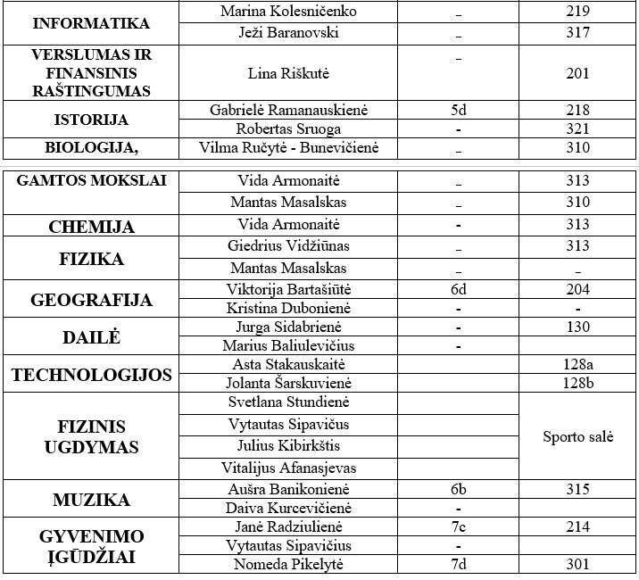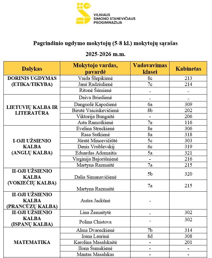 Pagrindinio ugdymo (5-8 kl.) pedagogai